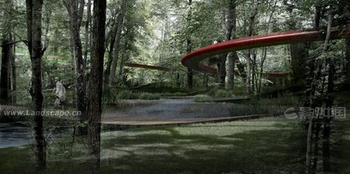 该方案反映了对人与自然之间“统治与被统治”的传统关系的一种颠覆。设计师通过对设计元素的精心布局,创造出一个生态的可持续发展系统,该系统将潜在的经济开发与外部干预都降到了最低。公园首要任务是保护植物、水和土地。在尊重这些自然元素的前提之下,设计师设计了一条距离地面高度为4米的“体验之路”,为外来游客和当地居民提供一种前所未有的全新体验。该项目将努力恢复和保障动物与鸟类的栖居地,满足它们定居繁衍的需要。通过这样一种反向设计手法,设计师利用当地的自然潜力来恢复其原有的美丽。公园将通过公交与轮渡等非工业化的方式与周边城市区域相联系。