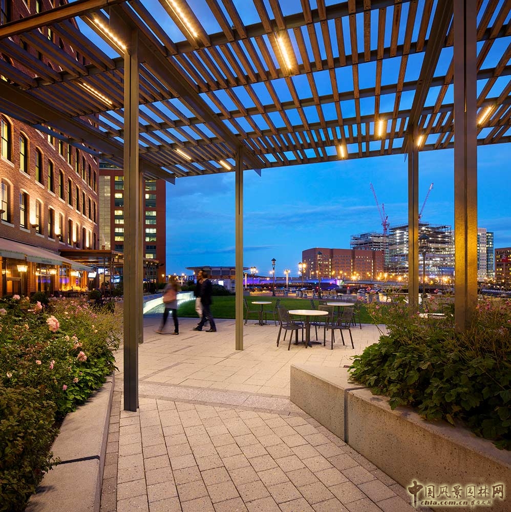 中国风景园林网讯 美国大西洋码头位于波士顿内港的战略性要地。该码头面向尖兵堡海峡,在这里国会街桥将波士顿镇和滨海港口区。滨水地区在得到重整复兴之后,现已成为波士顿海湾最受欢迎的地方之一。