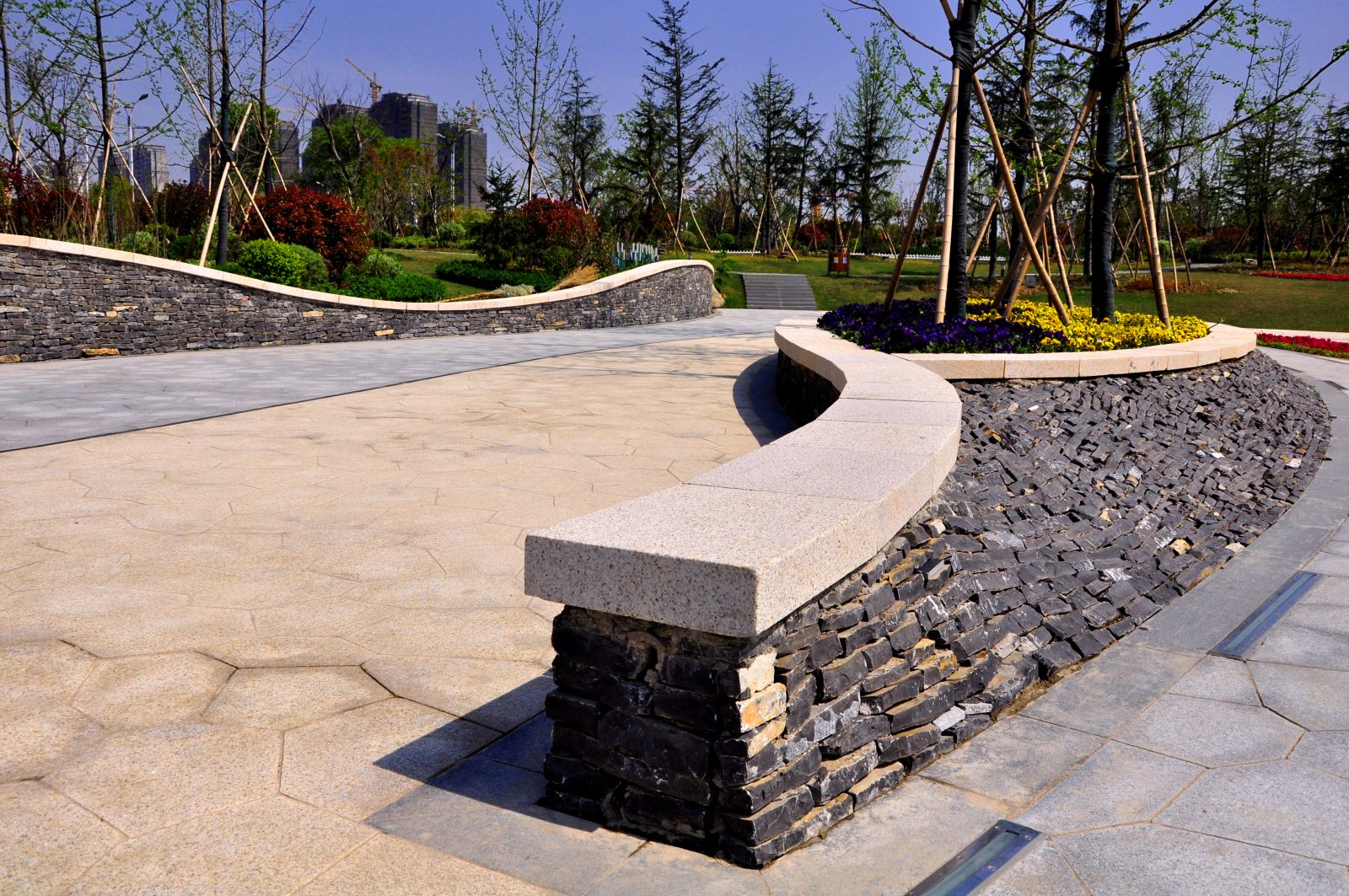 彩径观花景园以柔软的线条勾勒道路和草地,极尽花之细腻。花径与小路在大地自然地流淌,步移景异,五彩缤纷。四季草花颜色绚丽,石材铺装简单古朴,交相掩映,体现四季变换。