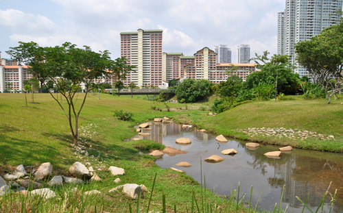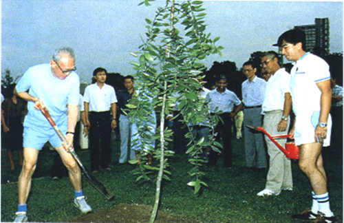 第二个主要的绿化项目就是积极地施工造林,尽量在人口密集的住宅区旁边建造公园,提供老百姓消遣的绿化空间,所以我们在上个世纪80年代已经定了一个“园林绿地指标”,就是你们所谓的人均公共绿地指标,每1千人0.8公顷的公共绿地,提供消遣,最终每一个新加坡人都有8平方米的公共绿地作为消遣,这个目标定下来以后,我们尽量在人口密集的住宅区、主路区域建造空间大的绿地。