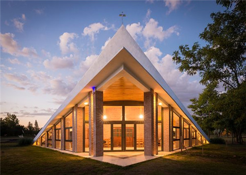 这种简单材料的主要用途体现了brochero的谦逊特质,建筑师选择的砖块,石头和项目内部空间的木材与这样的特质相得益彰。天花板的开放使建筑内部被自然光点亮,但仍然看不见其结构。在晚上,十字架,坐落在教堂的尖塔变得明亮,成为了社区中心的灯塔。