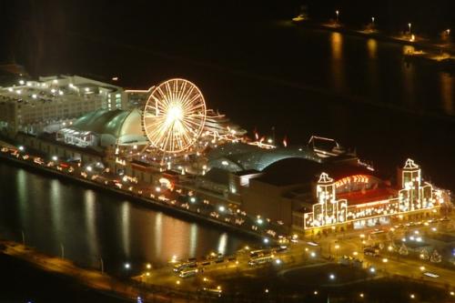 海军码头(Navy Pier)位于芝加哥的密歇根湖边,靠近芝加哥市中心。海军码头是芝加哥很有历史意义的建筑物。它始建于1914年,1916年开始向公众开放,当时它是世界上最大的码头。在第一次和第二次世界大战期间作为海军训练基地和使用基地。现在,它已成为芝加哥人消遣的最好的地方。它有公园、花园、商店、餐馆。你可享受费里斯转轮和旋转木马的乐趣,参观芝加哥儿童博物馆、地平线舞台和乔比博普小餐馆及爵士乐厅,还可以乘坐油轮或快艇畅游天水一色的密歇根湖。这里的历史和美丽的景观,深深地吸引着外来游客。它是芝加哥的娱乐和会议首选地之一。年观光人数高达700万人次。