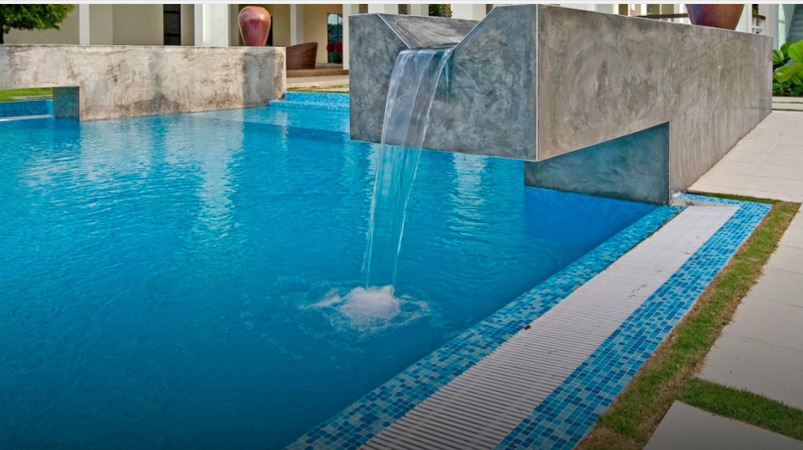 在泳池的两侧有两个6米的排水槽,加强了水流的声音。