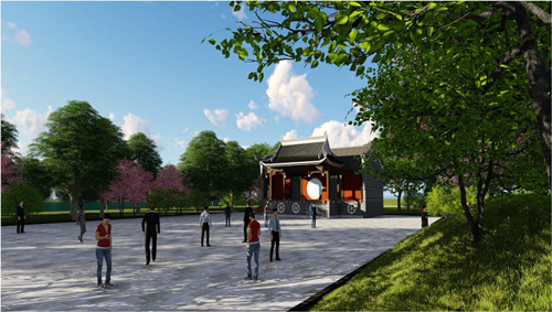 整个园区规划设计运用传统造园手法,因地制宜、顺势而为的原则,将赣江的水引入园区,营造吉水县域境内的赣江水域之形状的水系,贯穿整个园区,将博物馆、藏书楼之亭台楼阁,廊桥轩榭串连一起,围合成不同的虚实空间。子曰:“知者乐水,仁者乐山;知者动,仁者静;”水代表智慧,孕育了地域文化特性,此处之水更加体现了庐陵的耕读文化,以知动仁静的法则把进士文化园规划为动静结合的园林效果,动则可游、可观、可登、可望,静则可思、可憩、可学、可瞻。通过诗画般造景,撷取自然山石、乡土之奇花异草,堆冈培壑,容与徜徉其中;巧取豪夺之自然山水神韵,让游人澄怀观道、切身体会“有我之境”和“无我之境”,营造出贤人君子般的处乐之精神天地。