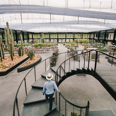 在西班牙马德里北部的小城圣塞巴斯蒂安德洛斯雷耶斯,Garciagerman Arquitectos完成了一个项目,该项目也是全欧洲规模最大的仙人掌中心之一。这一名为“沙漠之城”(desert city)的项目在其超大面积的植物园中,种植了品种繁多的旱生植物。园内还包含一座室内温室,使得种植空间进一步增加,温室顶棚利用张拉索结构建造而成。这一综合设施将一周七天向公众开放,同时提供配备导游的游览。