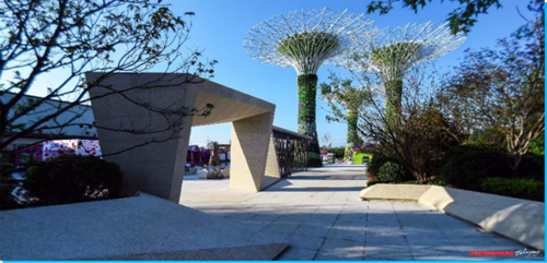 异形门坐落在三棵超级树的旁边,相互衬托,不规则性让你感到惊叹,大气,不失庄重。