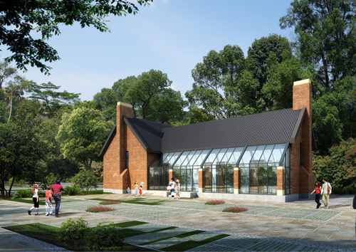 材料选用耐火砖及黄鹤楼的旧瓦片,配合爬藤植物进行装饰。