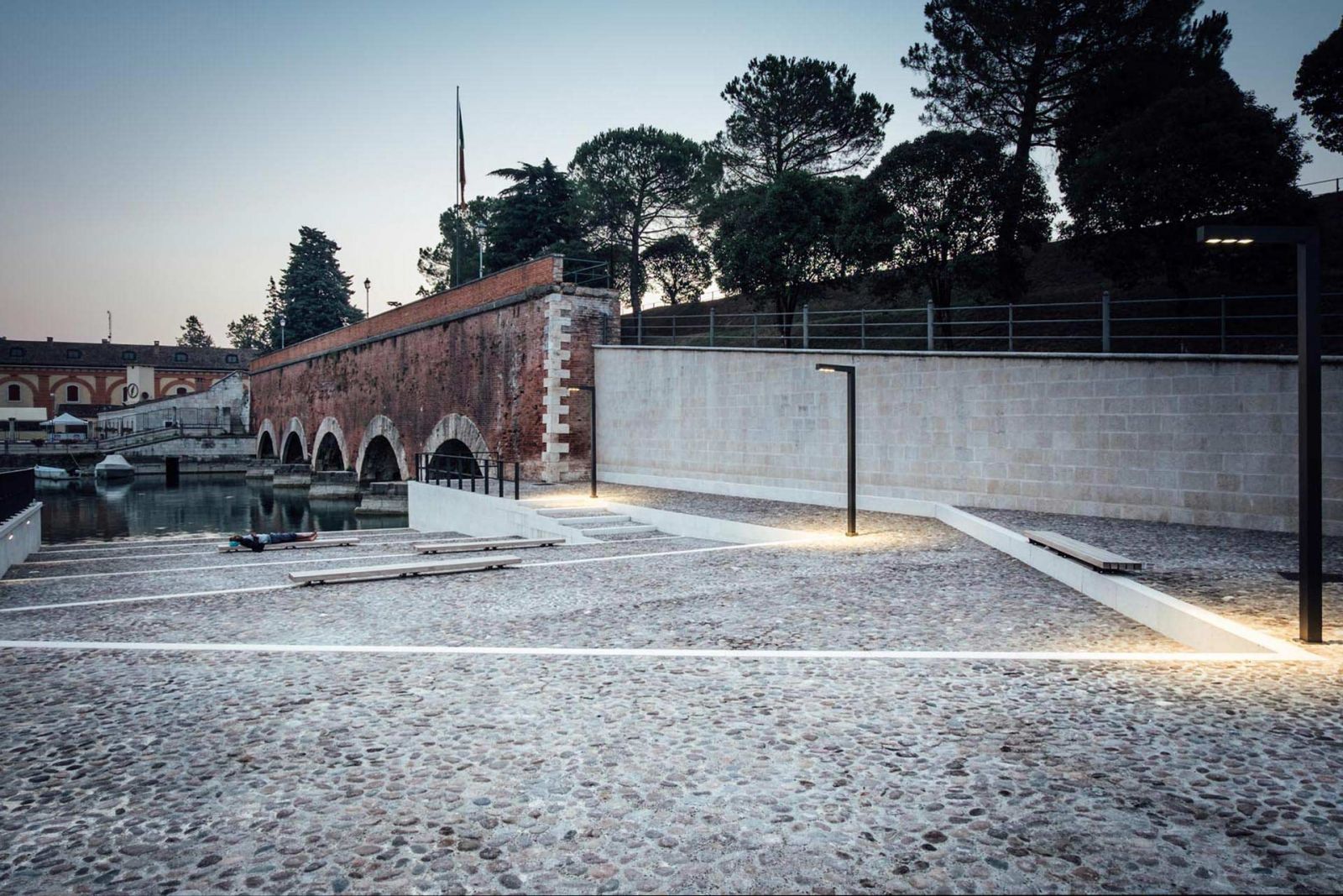 费迪南多萨沃亚(Ferdinando Savoia)广场是一个被忽视的开敞空间,因为广场的位置在意大利维罗纳省(Verona)佩斯基耶拉(Peschiera del Garda)市政大楼附近,这里曾作为停车场使用。2011年,这个广场景观改造项目从153个竞争的方案中挑选出了这个第一名的方案。