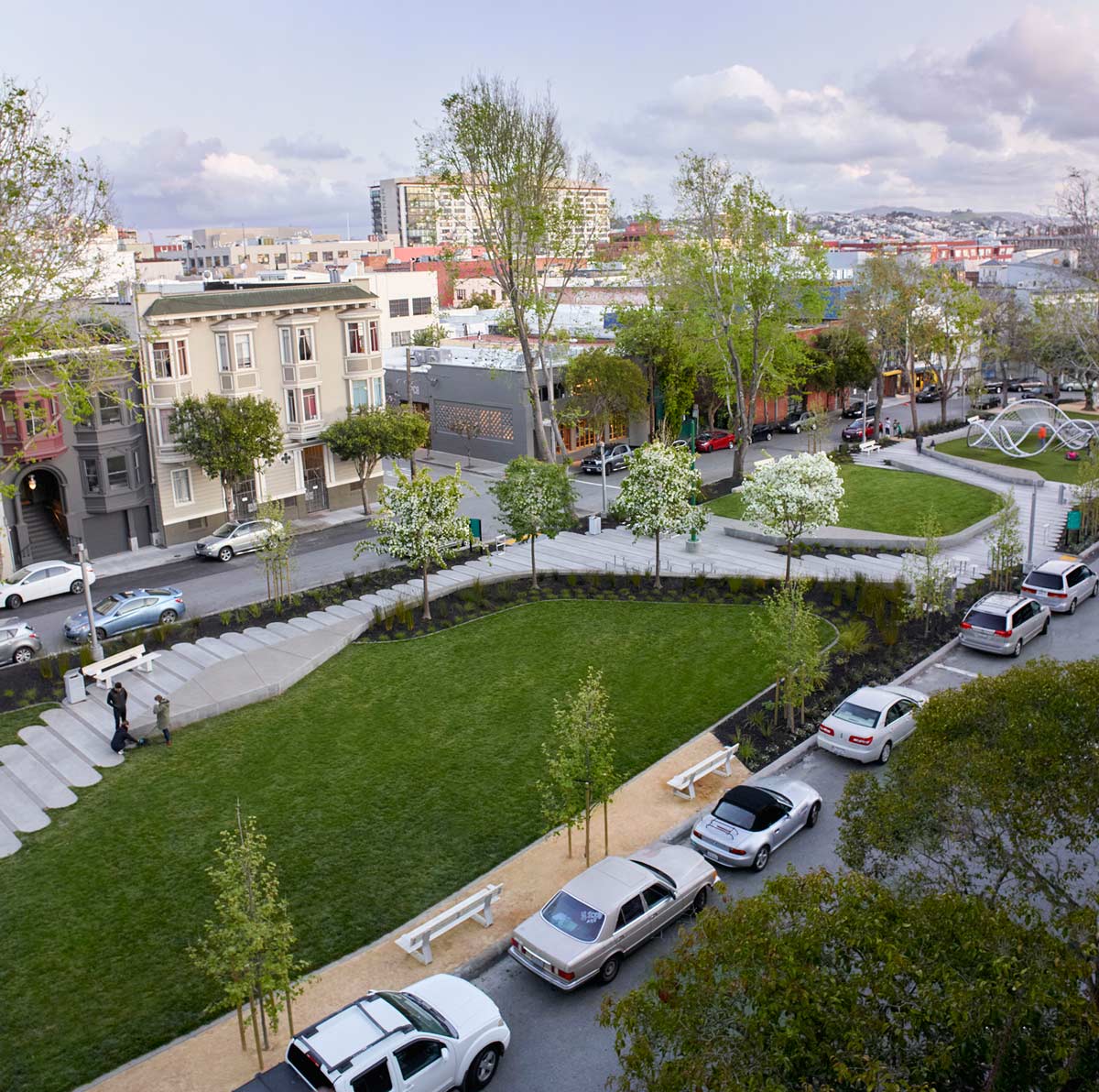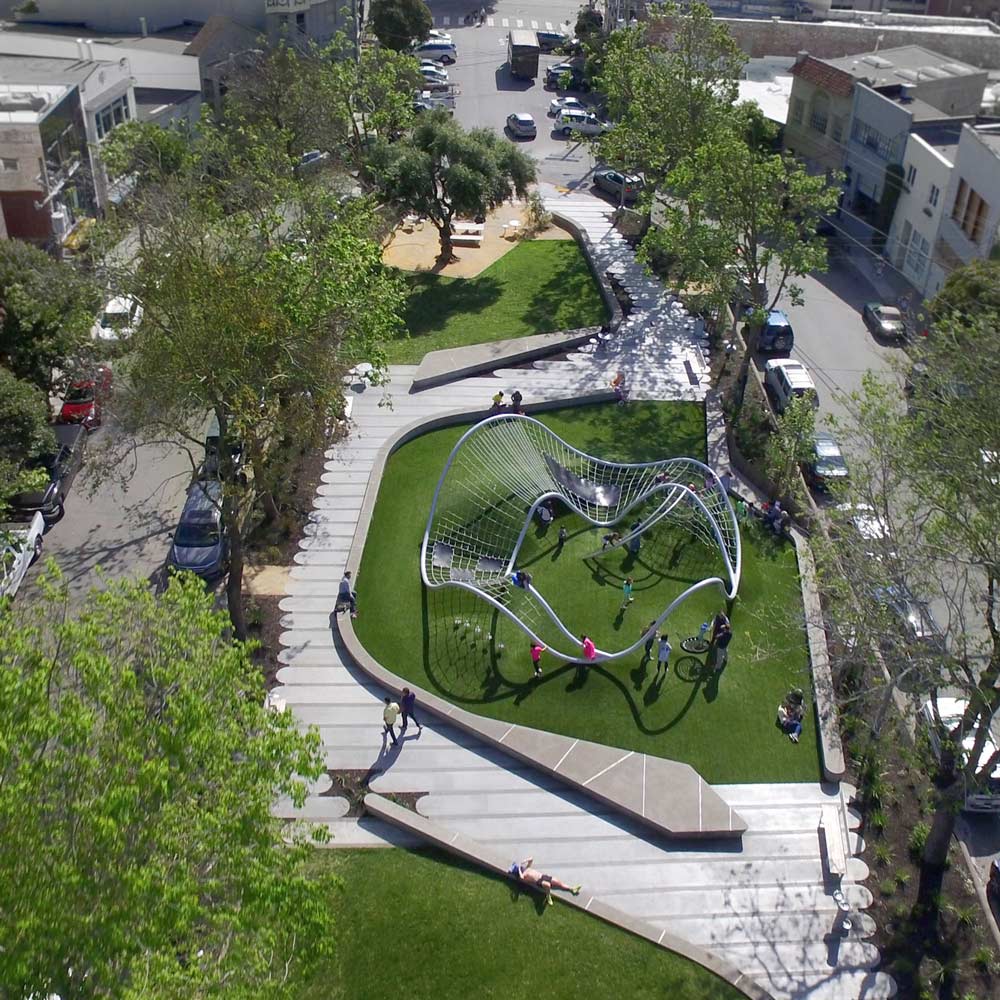建于1852年的美国旧金山南公园在19世纪末正式向公众开放。这个公园是旧金山最为古老的公共空间。经过165年的演变,南公园可以满足各类人群多样化的需求,他们中有移民、难民、设计师、艺术家和年轻的景观行业从业者。如今,这个公园在社会经济和文化生活中处于重要的汇集地。它位于旧金山SOMA区的中心地带,是城市商业和文化密集的地区,这里有博物馆、技术和设计企业以及城市专业棒球体育馆。这个地方也是各阶层人群聚居的区域,这里的住宅区毗邻高档公寓和高价商业地产。由于周边人口的多样性,1.2英亩的公园需要能满足多样化需求的具有弹性的空间。公园改造的方案需要在提供灵活多样的公共空间的各种方案中筛选,这样可以有效解决重大基础设施诸如排水不良的功能问题,又可以满足人们进入空间享受自然的需要。