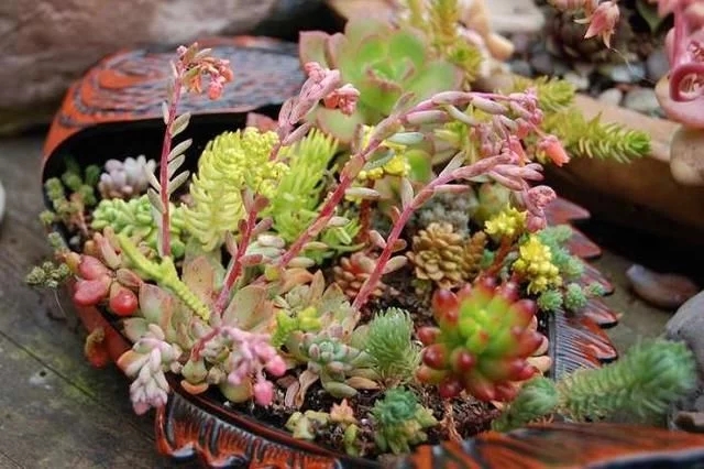 通过不同植物品种,丰富的色块来进行组合盆栽能是植物看上去更加的丰满漂亮,具有非常棒的观赏价值。