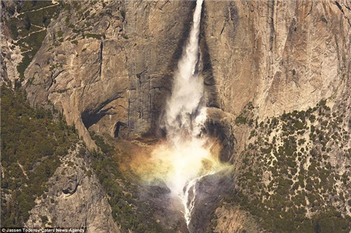 云雾缭绕的加州约塞米蒂国家公园瀑布。