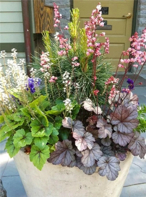 矾根是一种很适合栽种在花盆的植物,叶子和花朵都有良好的观赏性,叶色丰富,养护非常简单,有良好的耐寒性。