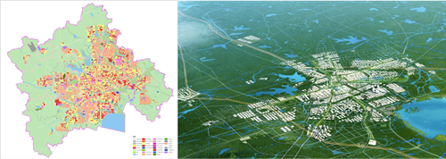 主城区规模控制在1226平方公里,其中城镇建设用地规模741平方公里。建立了整个城市的空间设计意向,偏远地方是已经运营了有两三年的机场。