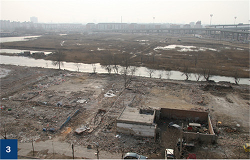 图1和图2 改造前景观和改造后的景观:水弹性城市中的"绿色海绵"--位于中国黑龙江省哈尔滨市的群力雨洪公园。