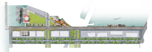 和以往进行滨水区设计使用的方法不同,在这个项目中,原本被认为令人讨厌的咸鱼味却被看成是具有吸引力的因素,锈迹、砂砾、铜锈和废弃的文物重新受到人们的重视。海滨空间设计的三个主要方面包括:第一,延长现有的渔业和海洋工业作业时间,这能有力地展现出当地的历史文化,也是当地考古学价值的最好诠释。杰利科街(毗邻北码头长廊)上包括集装箱货运、码头摆渡和捕鱼业等多种行业在内的经营项目。以前,这些经营项目都不是对公众开放的。然而,这些商业活动都是公共区域中的一部分,也可以带给人们特别的景观体验。