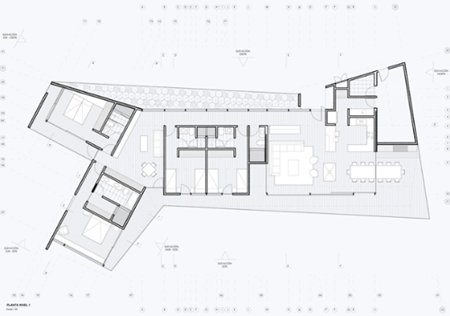 最终入选的是一个字母Y形状的设计,依海拔高度进行纵向布局,并注意不妨碍现有的树木。这样,项目就解决了所有卧室和公共区域都可以看到湖面的问题。公共区域被集成在一个开放空间中,以定制家具和房子的烟囱作为项目的主导元素,并为客厅、餐厅和厨房提供单独的设计元素。