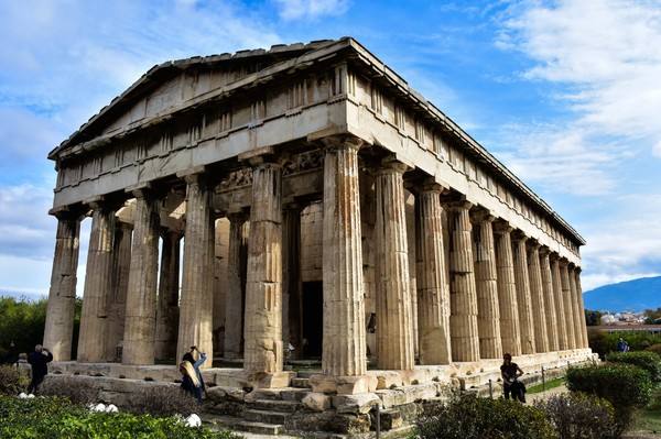 大约在公元前500年,雅典集市广场的空间特征开始逐步形成。大道穿越广场,广场西南侧有元老议事厅的前身(五根柱子的方形结构),北侧有三座小型庙宇。公元前457年,广场兴建了当时最大的柱廊,位于广场北端,公元前420年,广场西侧的山坡上兴建了赫菲托斯神庙,它至今仍是雅典的标志性建筑物之一。