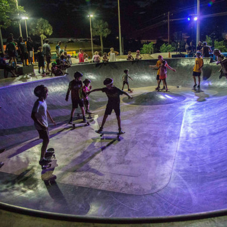 在西澳大利亚皮尔巴拉地区的一个偏远地区,一个名为“鱼缸”的多功能游乐场闪闪发光,为当地的年轻人创造了一个梦幻般的海市蜃楼。